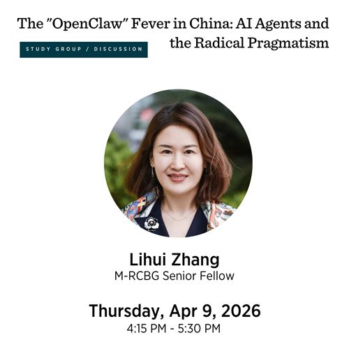 Speaker: Lihui Zhang, Mossavar-Rahmani Center for Business and Government Senior Fellow, Harvard Kennedy School In this study group, led by M-RCBG Senior Fellow Lihui Zhang, we will explore how Chinese society demonstrates a distinctive duality in its approach to emerging technologies like AI, combining both enthusiastic adoption and underlying anxiety. While American and European companies |